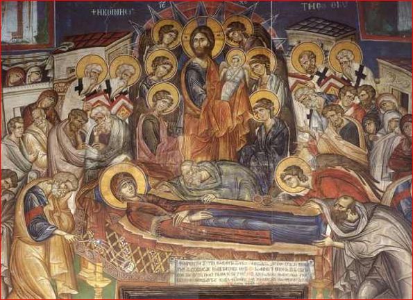Ω πώς εκείνη που γέννησε την Πηγή της ζωής μεταφέρεται δια μέσου του θανάτου προς τήν